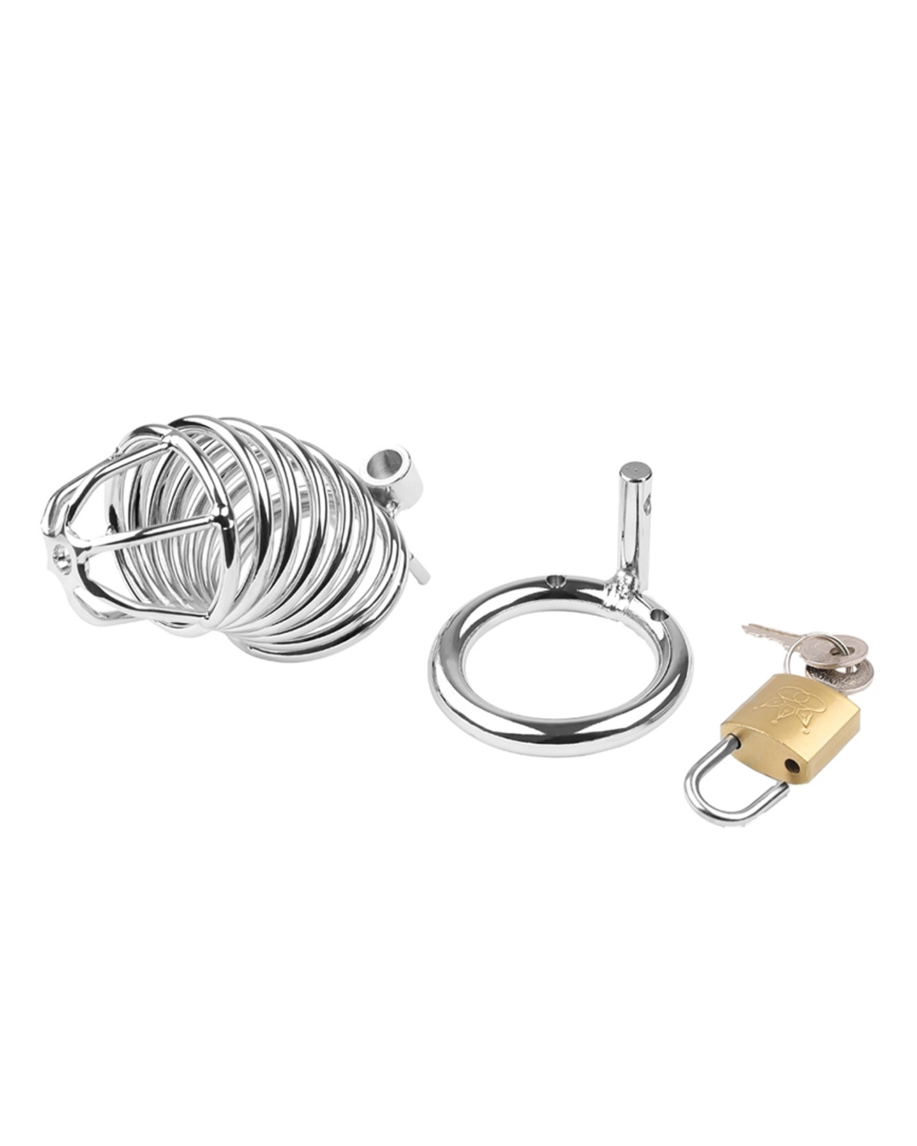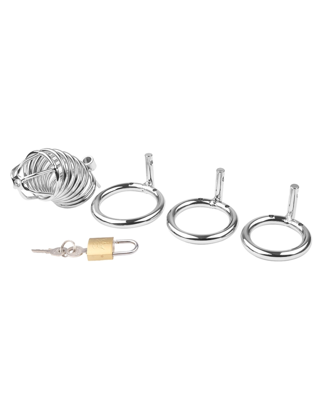 Jaula de castigo de metal con candado y llave. Tiene varios anillos de diferentes medidas para que puedas elegir el adecuado. Talla: 45mm